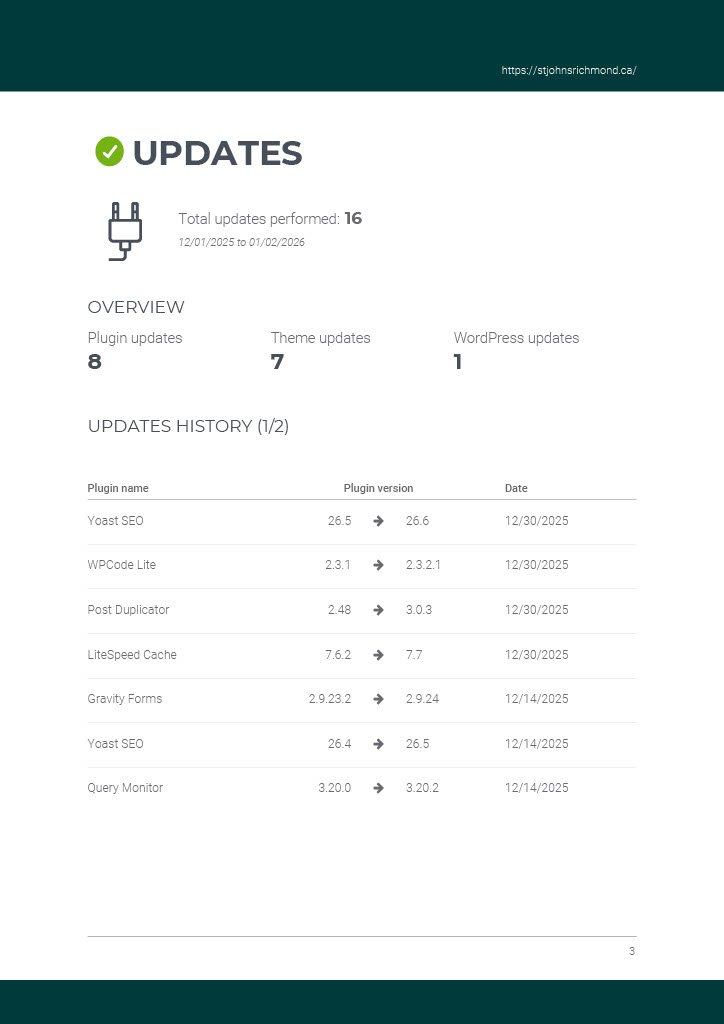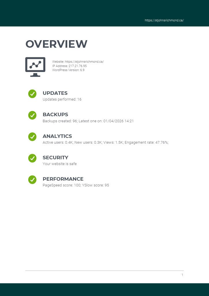 Professional WordPress updates, backups, performance monitoring, and comprehensive reporting. Keep your website secure, fast, and always up-to-date.